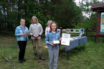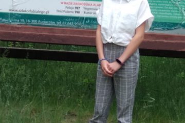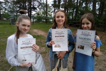 Trzy uśmiechnięte dziewczyny na zdjęciu to Michalina Kęcik, Marysia Szklarek i Lena Garncarek ze Społecznej. Każda nagrodzona w XXII Międzyszkolnym Konkursie Recytatorsko – Fotograficznym „Strofy i pejzaże znad Netty”. Michalina z I miejscem i nagrodą Wójta Gminy Augustów w Konkursie Recytatorskim, Marysia z wyróżnieniem. Lena z nagrodą Zofii Piłasiewicz w Konkursie Fotograficznym.